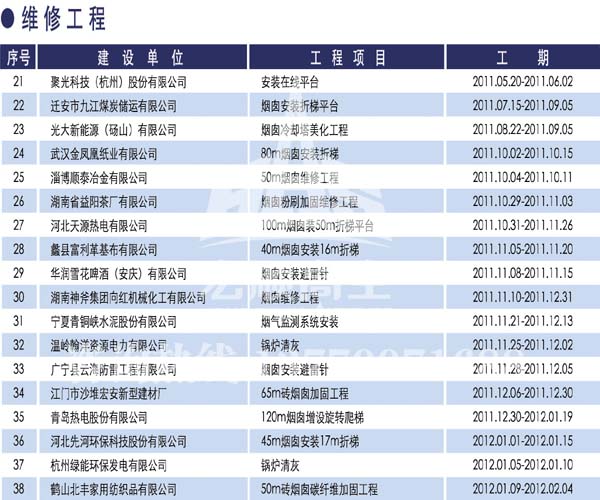 宏順建設(shè)工程有限公司是國(guó)家批準(zhǔn)成立的專(zhuān)業(yè)高空作業(yè)企業(yè):承攬過(guò)(國(guó)內(nèi).國(guó)外)煙囪新建、煙囪防腐、磚煙囪新建、煙囪改造、煙囪維修、煙囪脫硫防腐、煙囪拆除加高、煙囪滑膜等高空作業(yè)工程。具有“不搭腳手架 、 不需要停產(chǎn)”施工特點(diǎn)。